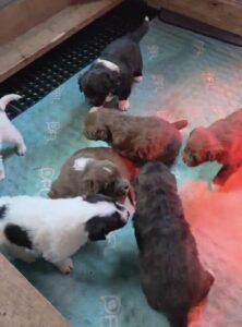 Bindi x Pitch. Bindi is the daughter of Lozen. Lozen is a true unique Bulgarian import. Yes, there are other imports but none with the unique bloodlines that Lozen has. Bindi’s dam is CoCo, the daughter of Reign, strong hip and health scores throughout her genetic downline. Bindi’s litter has given us the most uniquely colored coats I have seen yet. Bindi has an extraordinary disposition. She is social but no nonsense. This is Bindie’s first litter and she has proven that her Bulgarian roots are strong. Could not ask for a more perfect mother. Bindi was bred to Pitch. Pitch is a Reign son. We offer pups with standard vaccination protocol or with holistic options.